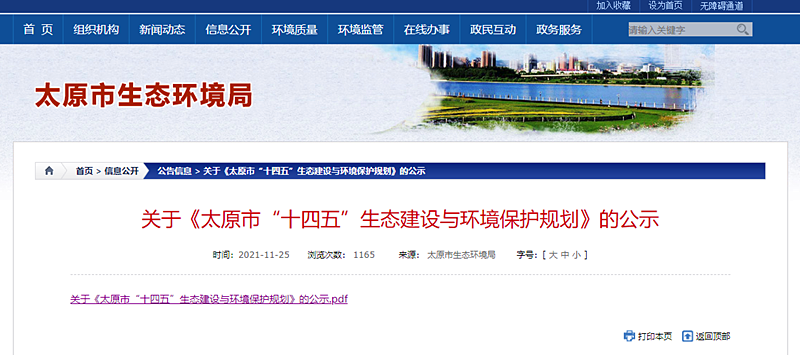 文章來源:地大熱能 發布作者:太原市生態環境局 發表時間:2021-12-22 08:45:06瀏覽次數:3497