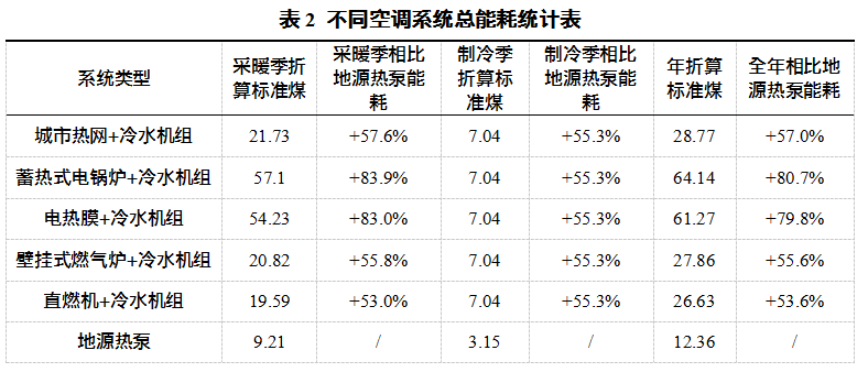 地大熱能通過多年的工程實踐和不斷的研究以及參考市面上的一些研究成果,從采用不同空調系統形式的采暖能耗及污染物的排放、系統總能耗及初投資等幾個方面討論地源熱泵系統的優勢,結論如下: