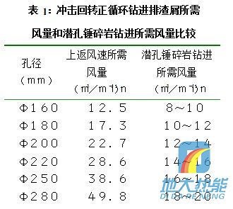 (1) 潛孔錘及雙壁鉆桿的中空斷面作為反循環通道,因斷面積小且直徑不變,在有限空 壓機供風量條件下,可增大上返風速,提高排渣能力,避免孔底重復破碎,從而提高鉆進效率及增大孔深和孔徑;同時也不用經常提拉鉆具吹孔,保持了鉆進的連續性;