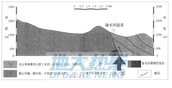 云南滴水河溫泉風景出露區地形地貌特征主要受滴水河河流侵蝕的影響,為河流侵蝕地貌類型,其出露位置主要受滴水河斷層控制。